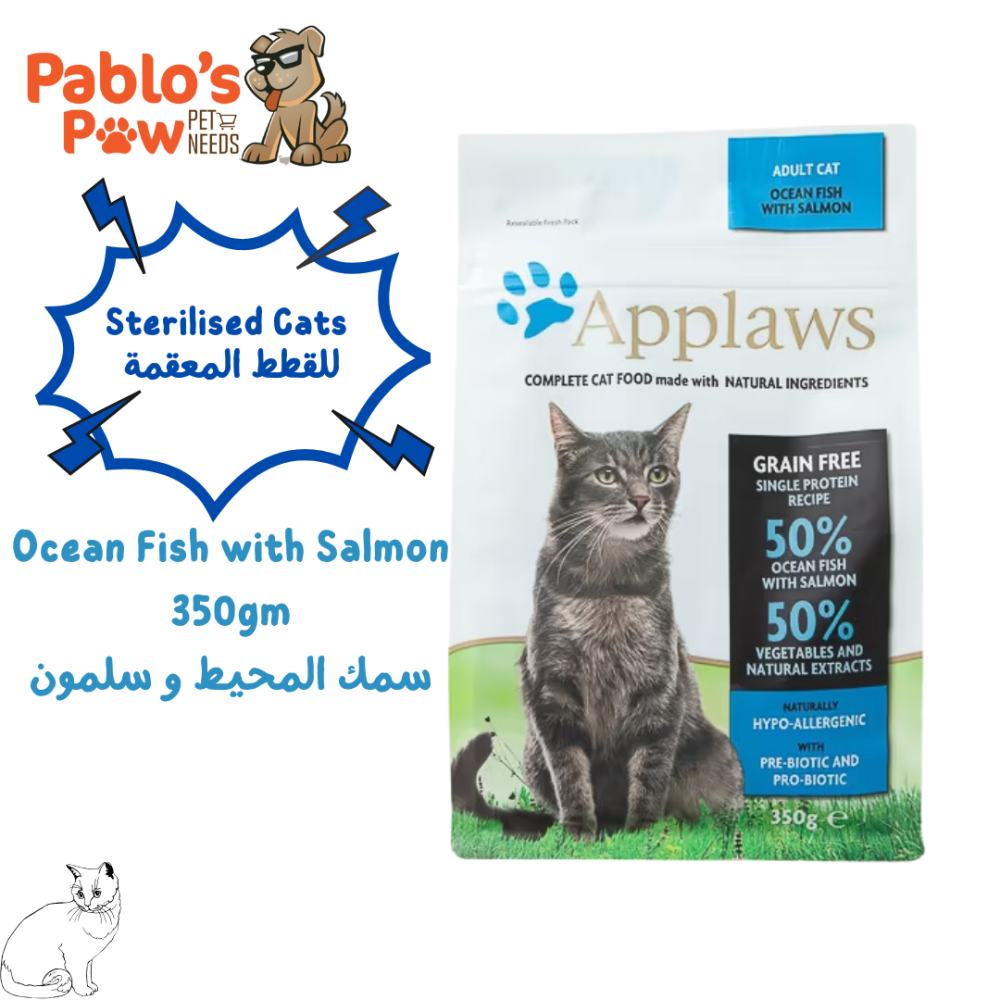 سمك المحيط 45.5% (سمك أبيض محضر طازج* 18%، وجبة رنجة 12%، سلمون محضر طازج* 8%، وجبة سمك 5%، وجبة سلمون 2.5%)، بطاطس*، بازلاء مجففة*، زيت السلمون 5%، بذر الكتان* ، خميرة البيرة المجففة*، مرق السمك 2.5%، فيتامينات ومعادن، لب البنجر*، جزر مجفف*، طماطم مجففة*، مستخلص الهندباء البرية* 0.2% (مصدر للبريبيوتيك FOS)، أعشاب بحرية*، مستخلص يوكا شيديجيرا*، مسحوق التوت البري. . *مكونات طبيعية.