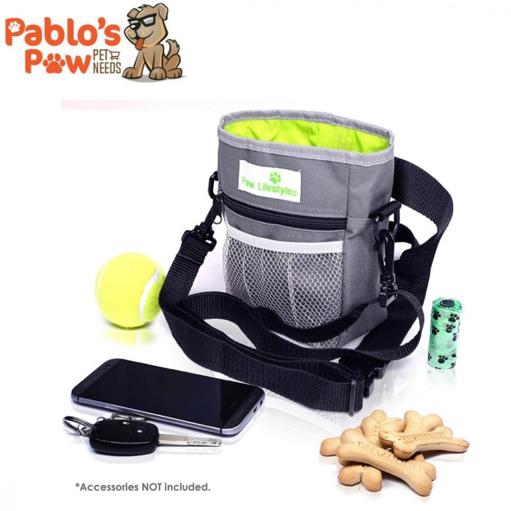Paw Lifestyles – Dog Treat Training Pouch – Easily Carries Pet Toys, Kibble, Treats – Built-in Poop Bag Dispenser – 3 Ways To Wear – Grey